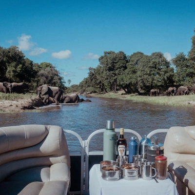 Every stay at Old Drift Lodge includes all meals and local drinks, daily game drives in Zambezi National Park, river safaris on the Zambezi, walking safaris, a guided tour of Victoria Falls, breakfast at the Lookout Café overlooking Batoka Gorge, and return airport transfers. Your suite comes with a private plunge pool, open-air shower, bathtub with a view, complimentary minibar and views of the Zambezi River.